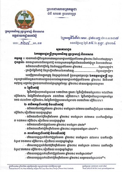 របាយការណ៍ស្តីពីស្ថានភាពការងារអគ្គនាយកដ្ឋានកៅស៊ូប្រចាំខែមេសា ឆ្នាំ២០២៤ និងលើកទិសដៅអនុវត្តបន្ត