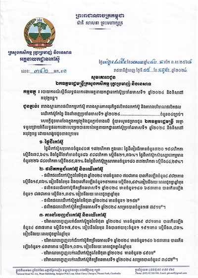 របាយការណ៍ស្តីពីស្ថានភាពការងារអគ្គនាយកដ្ឋានកៅស៊ូប្រចាំខែកុម្ភៈ ឆ្នាំ២០២៤ និងលើកទិសដៅអនុវត្តបន្ត