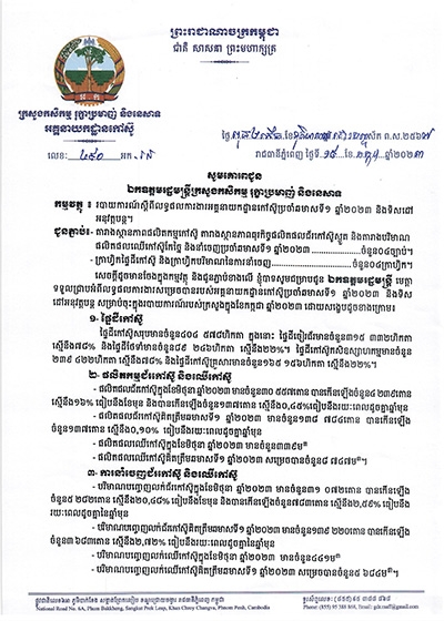 របាយការណ៍ស្តីពីស្ថានភាពការងារអគ្គនាយកដ្ឋានកៅស៊ូប្រចាំខែឧសភា ឆ្នាំ២០២៣ និងលើកទិសដៅអនុវត្តបន្ត
