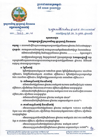 របាយការណ៍ស្តីពីស្ថានភាពការងារអគ្គនាយកដ្ឋានកៅស៊ូប្រចាំខែមិថុនា ឆ្នាំ២០២៤ និងលើកទិសដៅអនុវត្តបន្ត