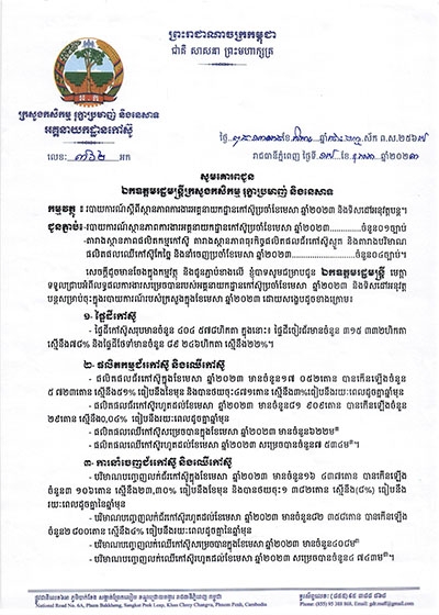 របាយការណ៍ស្តីពីស្ថានភាពការងារអគ្គនាយកដ្ឋានកៅស៊ូប្រចាំឆ្នាំ២០២៣