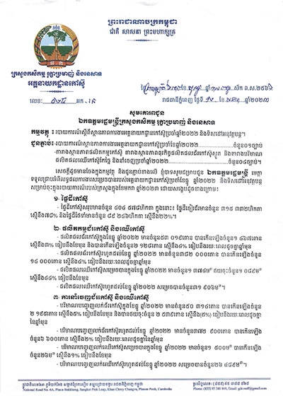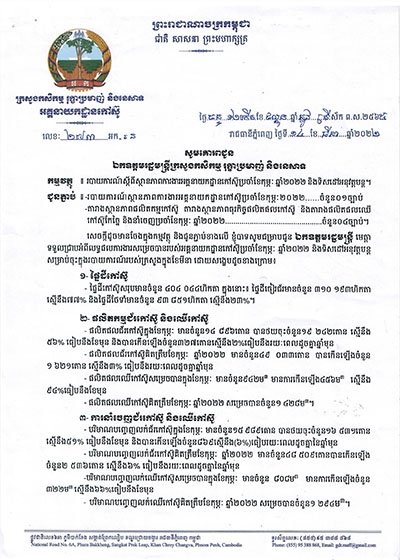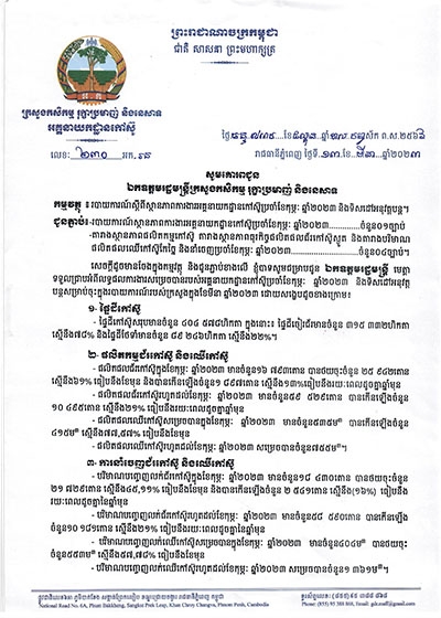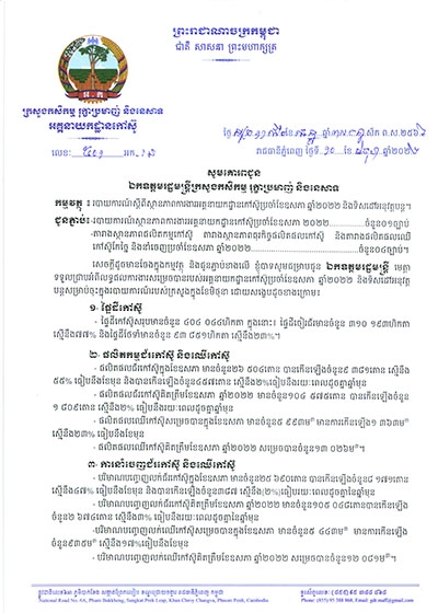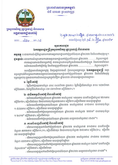 របាយការណ៍ស្តីពីស្ថានភាពការងារអគ្គនាយកដ្ឋានកៅស៊ូប្រចាំឆ្នាំ២០២២