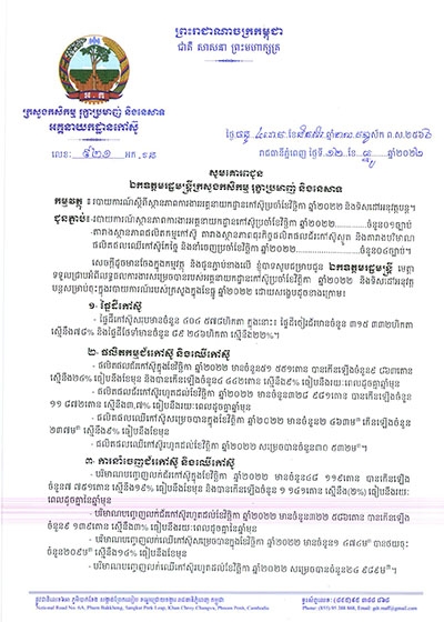 របាយការណ៍ស្តីពីស្ថានភាពការងារអគ្គនាយកដ្ឋានកៅស៊ូប្រចាំនព្វមាស ឆ្នាំ២០២២ និងលើកទិសដៅអនុវត្តបន្ត