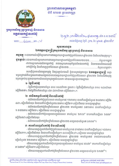 របាយការណ៍ស្តីពីស្ថានភាពការងារអគ្គនាយកដ្ឋានកៅស៊ូប្រចាំខែវិច្ឆិកា ឆ្នាំ២០២២ និងលើកទិសដៅអនុវត្តបន្ត