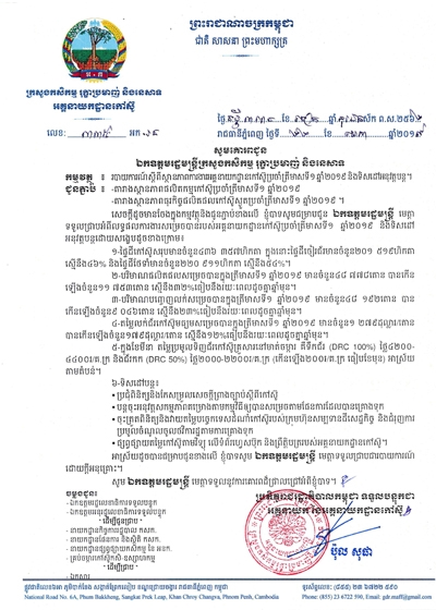របាយការណ៍ស្តីពីស្ថានភាពការងារអគ្គនាយកដ្ឋានកៅស៊ូប្រចាំខែមីនា ឆ្នាំ២០១៩ និងទិសដៅអនុវត្តបន្ត